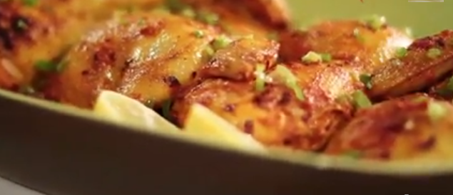 ضعي الدجاج في الفرن لمدة ساعة إلى أن ينضج تماما. بعد مرور ثلاث أرباع الساعة إرفعي ورق الألمنيوم ودعي الدجاج ليتحمر