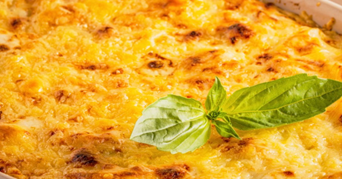 5- وزعي البطاطس المقلية في قعر صينية فرن ثم أضيفي خليط الدجاج. ادهني وجه الصينية بمزيج القشطة ثم انثري جبن الموزاريلا.
