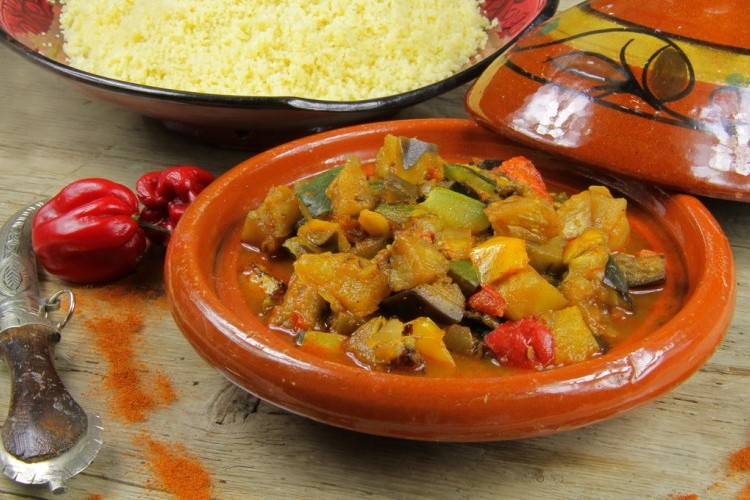 - ضعي الجزر والبطاطس والفلفل الملون والباذنجان والكوسا والطماطم في طبق الطاجن المخصص للفرن.