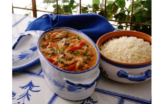 1-يحمّى الزيت في طنجرة، يقلّب البصل فيه لمدة 5 دقائق بحيث يصبح طرياً ولكن ليس بنيّ اللون. ثم، يضاف كلّ من الثوم وصلصة البندورة وصلصة الهريسة التونسية، مع الطهو لمدة دقيقة.
