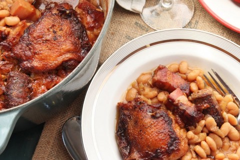 - ننقل قطع اللحم لطاجن فرن والفاصوليا ثم نضيف كوب من سائل سلق الفاصوليا واللحم ونضيف باقى المكوناتعصير الطماطم والعسل الأسود والمستردة والسكر البنى والصوص ونخلطهم جيدا ثم نغطى الطاجن بورق فويل ونضعة فى الفرن عند درجة حرارة 180 لمدة ساعة.