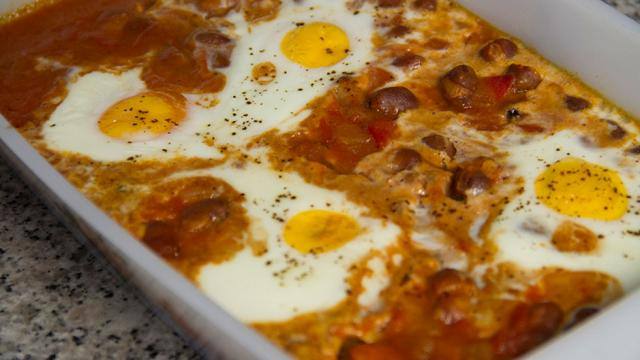 ضعي طاجن الفول بالبسطرما والبيض في الفرن لمدة ١٠ دقائق إلى أن ينضج البيض.
