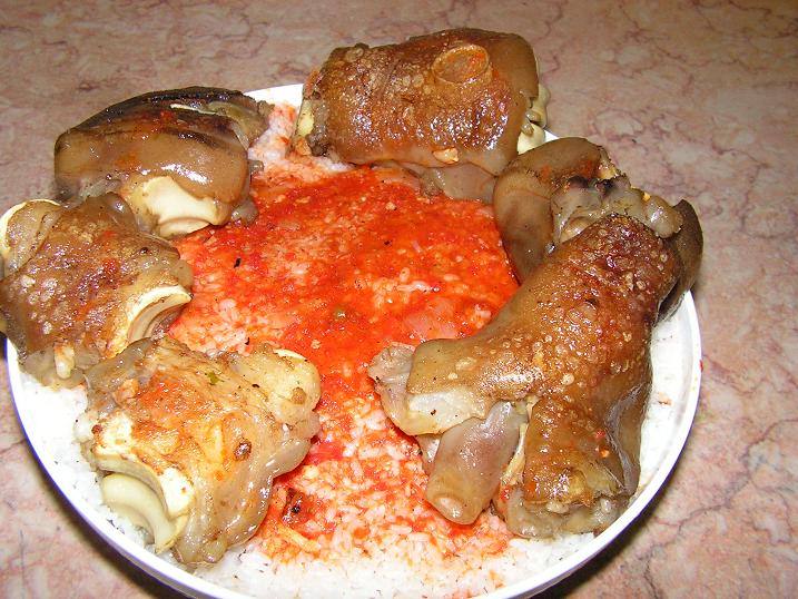 ٢. ترفع الكوارع بعد السلق ثم توضع في طاجن.