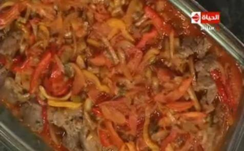 - وفي صينية بايركس نضع نصف الخضار ثم نضع اللحم ثم طبقة ثانية من الخضار وندخلها الفرن إلى أن تنضج وتقدم ساخنة .