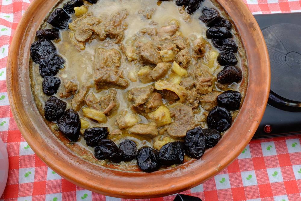 - عند التقديم تُزين قطع اللحم بصلصة البرقوق وتزين باللوز المقشر وقليل من السمسم.