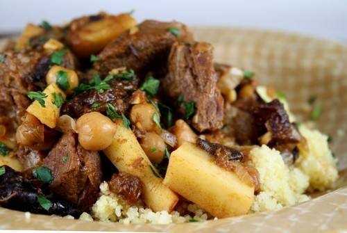 - يوضع اللحم في حلة ويضاف البصل والطماطم والزبادي والحمص والقراصيا والليمون المخلل.