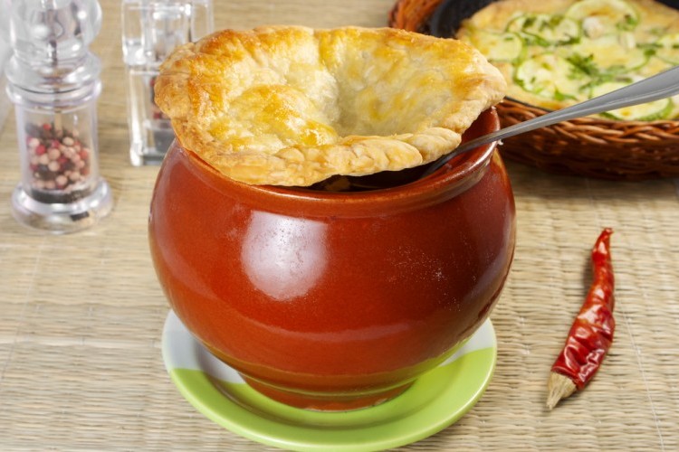 - يفتح العجين ويقدم الطاجن ساخناً.