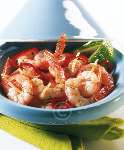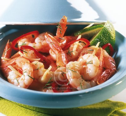 - يوضع الجمبري في طبق ويقدم ساخنا مصحوبا بقطع ليمون حامض.