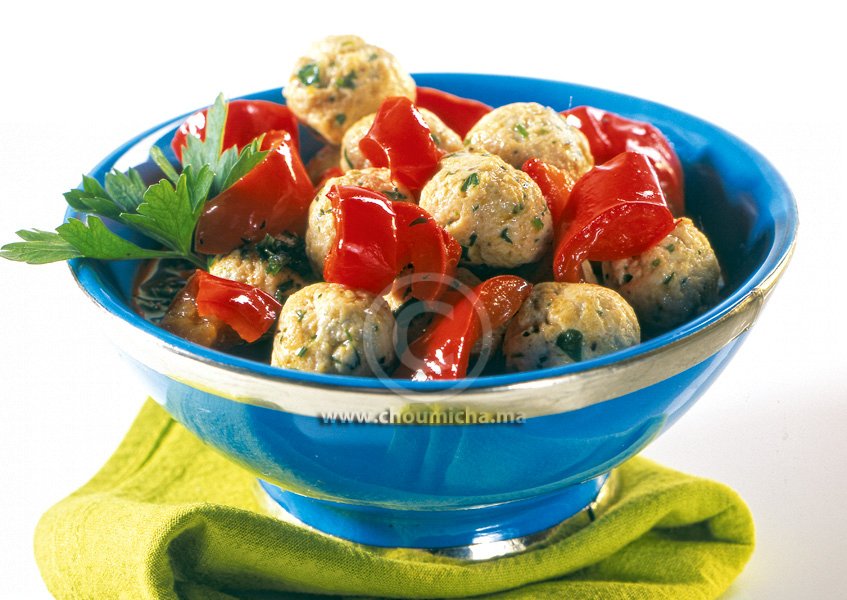 طاجين كويرات الدجاج بالفلفل الأحمر