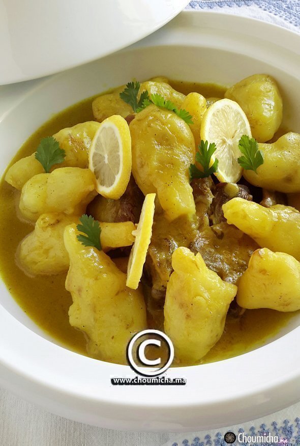طاجين لحم الغنم بالبطاطس القصبية