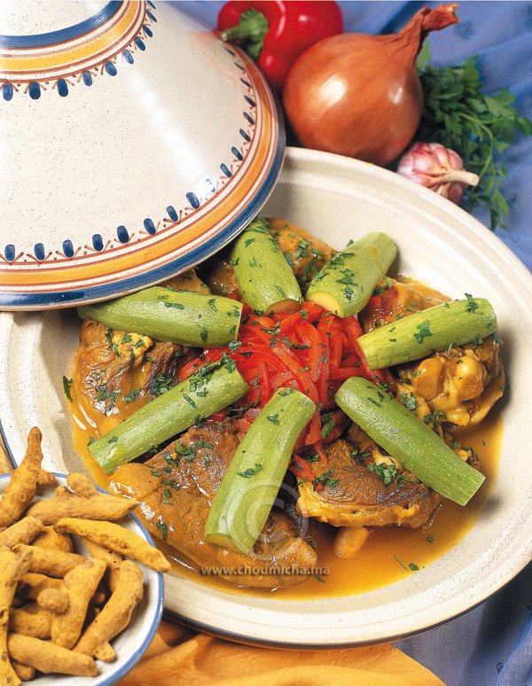 طاجين لحم الغنم بالكوسة (القرع الاخضر) والفلفل
