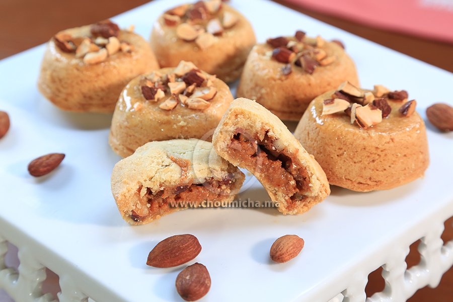 • يحشى العجين بالقليل من الكراميل واللوز المجروش.