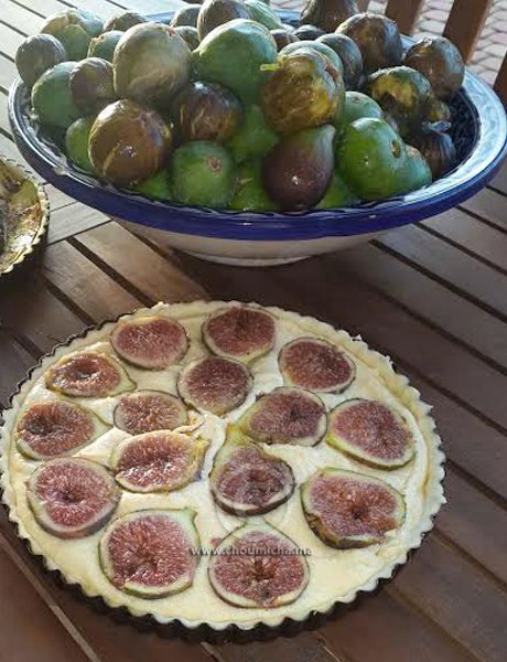 - يزين قلب الطرطة بكريمة اللوز وتصفف فوقها أنصاف التين.