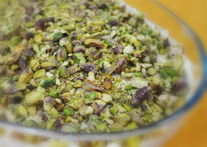 - على القشطة يتم توزيع المكسرات المختلفة والمتنوعة.
