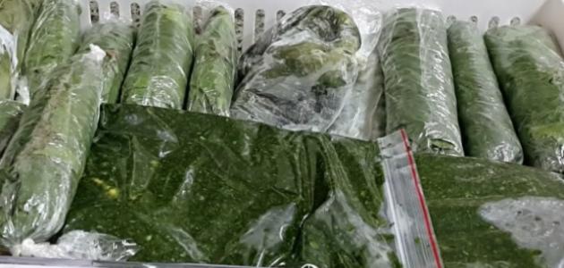 - وضع الملوخية في أكياس وإغلاقها قليلاً وسحب الهواء الموجود في الداخل.