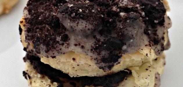 قومي بتسخين مقلاةٍ غير لاصقة من نوع تيفال على الغاز، ثمّ كسّري حبّات الأوريو وضعيها في المقلاة، وخفّضي درجة حرارة الغاز، ثمّ قلّبي حبات الأوريو مع إضافة الحليب السائل بالتدريج، واستمرّي في التقليب حتّى يصبح الأوريو عجينةً متماسكةً، وبعدها ضعي ملعقتين من الزبدة المذوّبة على سطح مستوٍ، وافردي عجينة الأوريو فوقها باستخدام الشوبك، بعد تركها حتى تبرد قليلاً، وذلك حتى لا تتكسّر أثناء عمليّة الفرد، وتوقّفي عن الفرد عندما تحصلين على السمك الّذي تريدينه، ثمّ قومي بطحن الفستق الحلبي بشكلٍ خشن، وقومي بخلط القشطة مع الحليب المكثّف مع الكيري في الخفّاق الكهربائي، وقومي بوضع الطبقة التي حصلتِ عليها فوق عجينة الأوريو، وافرديها حتّى تغطي العجين، ثمّ قومي برشّ الفستق الحلبي فوق الطبقة البيضاء، وقومي برشّ ورق الزبدة بالبسكويت المطحون، وانقلي عجينة الأوريو عليها، ثمّ قومي بلفّ عجينة الأوريو المحشية بورق الزبدة على شكل رول، ثمّ ضعيها في الفريزر لمدّة ساعتين، ثمّ قطّعيها إلى دوائر، وقدّميها مع فنجان من القهوة.