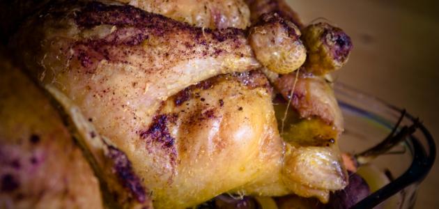- نتبل الدجاج بالتوابل من الداخل والخارج بعد أن نغسله.