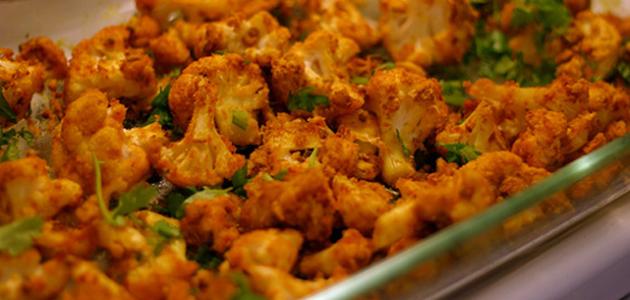 - نضع القليل من الزيت على النار ليسخن، ثمّ نبدأ بغمس قطع الزهرة بالخليط ونضعها بعد ذلك في الزيت ونتركها لمدّة دقيقة ونقلّبها حتى يحمر لونها، ثمّ نخرجها ونضعها على ورق المطبخ للتصفية من الزيت.