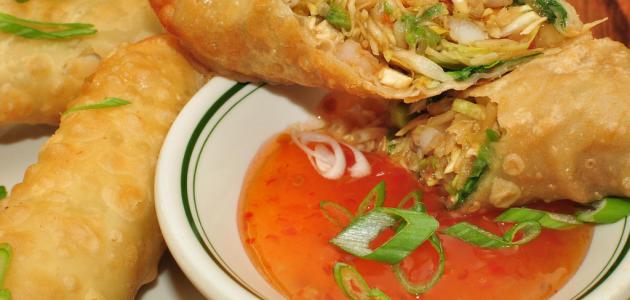 - أحضر طبق وضع فيه الطحين وقم بتمرير لفائف الدجاج فيها حتى تُغمر تماماً.