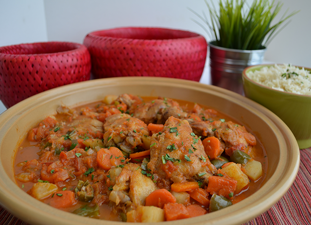 4. أعيدي قطع الدجاج الى الصوص، غطيهم واطبخيهم على نار هادئة لــ25 دقيقة أو حتى ينضج الدجاج جيداً