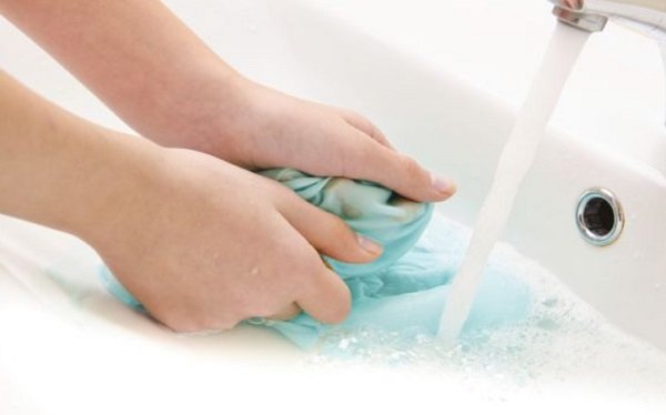 بالنسبة للمنسوجات الحساسة كالحرير، الصوف وغيرها، يمكن دهن البقعة بمحلول من الخل الأبيض المخفف قبل غسلهم.