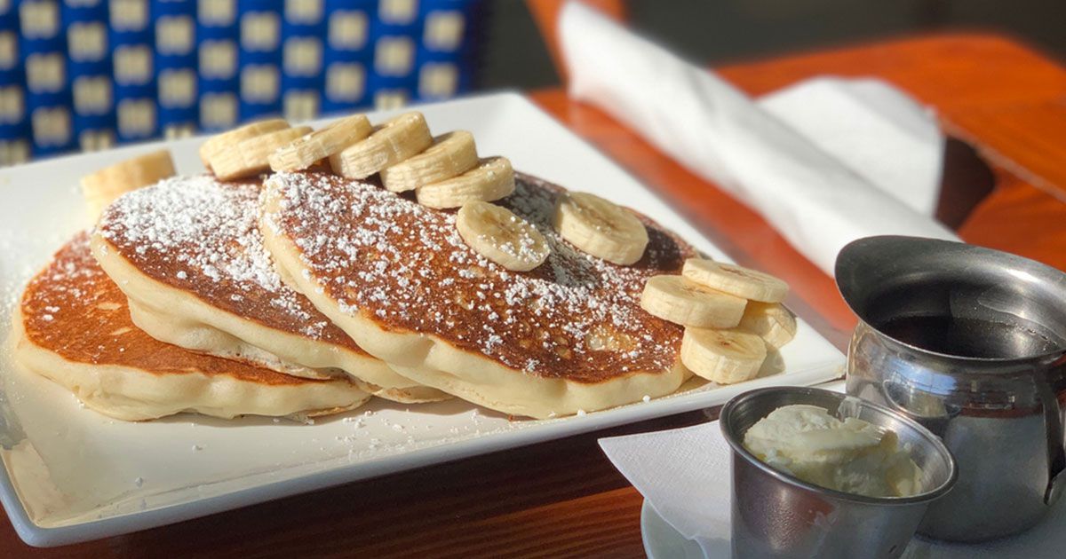 7- للتزيين: انثري السكر البودرة على البانكيك ثم وزعي الموز على وجهها.