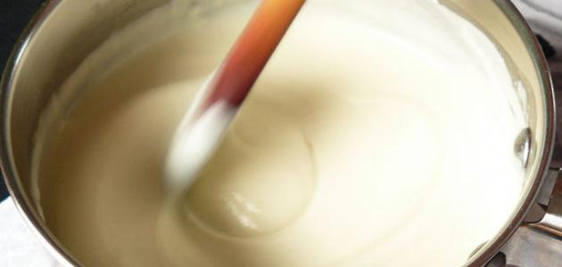 - نسكب الخليط في قدر، ونضعه على نار متوسطة الحرارة، ونقلّب باستمرار حتى يثخن المزيج ويثقل.