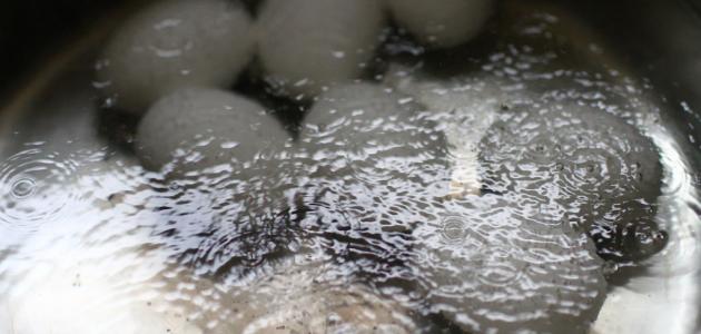 - نتخلص من الماء الساخن بعد انتهاء الفترة المحددة ثمّ نضع البيض في الماء البارد لنوقف عملية الطهي، ثم ننقر على أطرافها لتتكسر القشرة ونتمكن من تقشيرها، وفي حال سلق البيض مدة عشر دقائق فقط فإننا نضعه في الماء البارد من دقيقة إلى دقيقتين ثم نقشره.