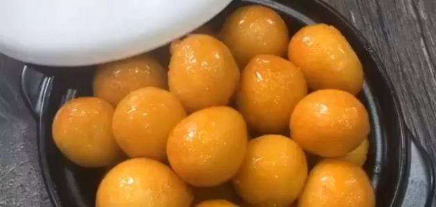- نضع اللقيمات في وعاء عميق، ونغمرها بالقطر لمدة خمس دقائق، ثم نخرجها، ونضعها في وعاء لائق للتقديم، ونقدمها.