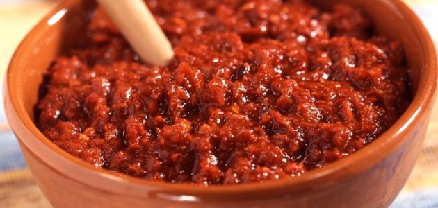 • نضع كميّة الزّيت ومعجون الطّماطم في قدر على النّار، ونُضيف كميّة الماء ونُقلّب الخليط جيداً، ونضيف خليط الفلفل الحار إلى المزيج السّابق ونستمرّ بالتحريك .