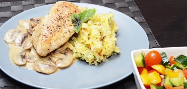 - صدران من الدجاج منزوع منهما العظم ومقطعان إلى قطعٍ متوسطة الحجم.