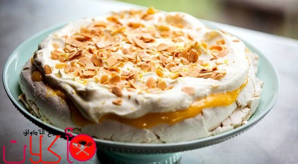 - ننقل البافولفا لصحن التقديم، ثم نخفق القشدة بالخلاط لتصبح لينة، ونضعها على قمة البافولفا، مع مبشور الليمون واللوز المحمص، ويمكنك وضع الفراولة إذا رغبت في ذلك .