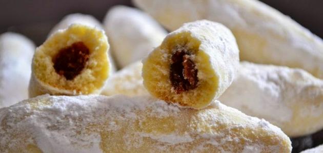 - نصنع فجوة في كلّ أصبع من أصابع العجين، ونضع فيه قطعة من التمر.