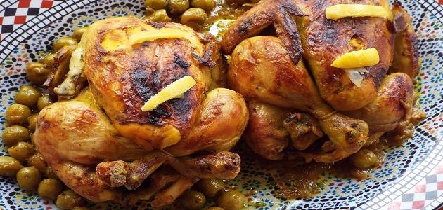- تصفية المرق ووضع الدجاجة في طبق فرن واسع.