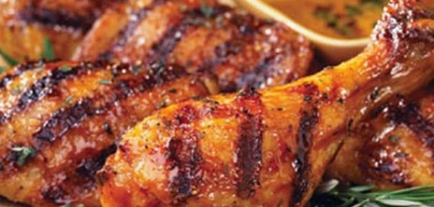 - نسخّن المشواة، أو الفرن على درجة حرارة مئتين، ومن ثم نضع قطع الدجاج في صينيّة، وندخلها الفرن مع التتبيلة لمدّة ساعة ونصف تقريباً.