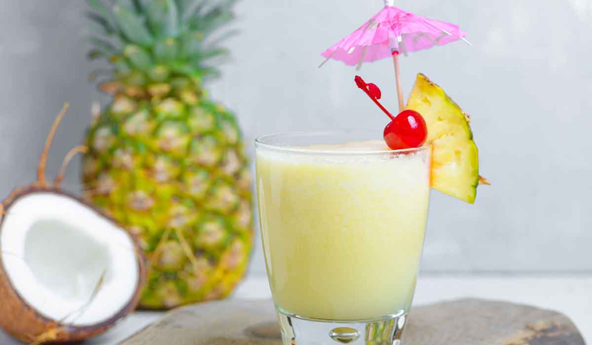 - 2 يُفرغ الأناناس من الداخل بطرف ملعقة ، ويُوضع المحتوى في خلاط كهربائي ، ثم يُضاف حليب جوز الهند والكريمة والثلج المجروش ، ويُخفق الخليط جيداً