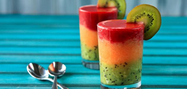 - في كاسات التقديم، نضع العصير على شكل طبقات، نسكب عصير المانج مثلاً، ومن ثمّ نسكب طبقة عصير الكيوي، وأخيراً نضيف طبقة عصير الفراولة، وهكذا أصبح عصير هافانا جاهزاً.