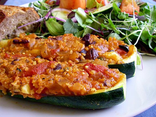- املأي أنصاف الكوسا بالحشوة واتركيهم جانباً