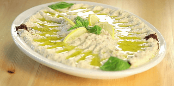 - 5 يسهل هرس الباذنجان المشوي بالشوكة، كما يمكن وضع كل من الباذنجان و خلطة الطحينة و الزيت في الخلاط كي يكون الخليط متجانساً جداً.