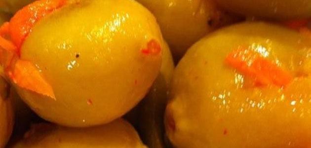 - نضع حبّة البركة، والزعفران أو العصفر، مع الملح في وعاء جانبيّ، نخلط المكونات جيّداً حتى تتجانس، ثم نحشو بها حبات ليمون.