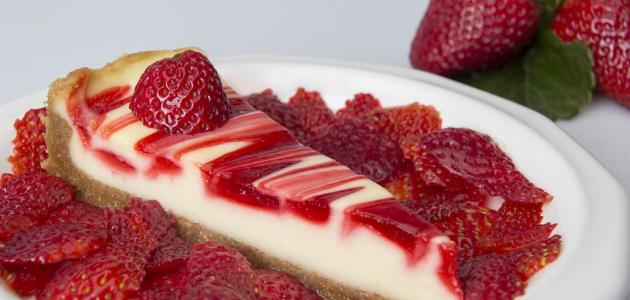 - ندهن وجه التشيزكيك بالمربى، ونزيّنه بالفراولة.