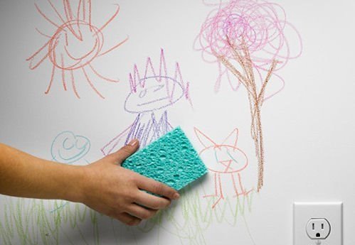 ( ينصح بالابتعاد عن استخدام الصابون والمنظفات الملونة أو الإسفنج المصبوغ حتى نقلل من فرصة تلطيخ الجدران )