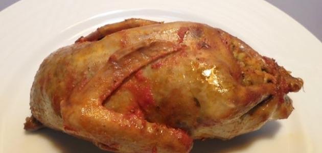 - نرفع الحمام من على النار ونحمّره في السمن ويصبح جاهزاً للتقديم.