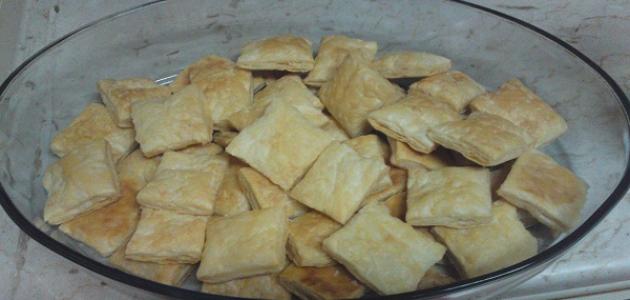 - قطّع شرائح البف باستري إلى قسمين، ثمّ وزّعها في صينيّة مع الحرص على ترك مسافة بين كلّ قطعة، وضعها داخل الفرن حوالي 15 دقيقة حتّى يصيرَ لونها ذهبيّاً، ثمّ اتركها لتبرد بشكلٍ تام.