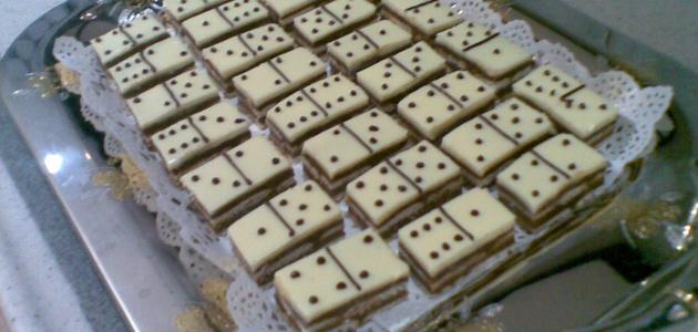 - بعد إخراجه من الثّلاجة قطعي الحلوى على شكل مستطيلات الضومنه باستخدام السّكين، وضعي في منتصف المستطيل خط من النّسكافيه، واحرصي على وضع نقاط مختلفة على القطعة نفسها مع الاحتفاظ بشكل الضّومنة.