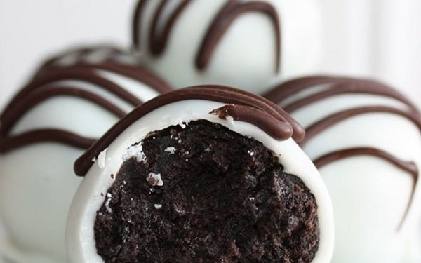 - شكليها كالكرات وغطسيها بالشوكة في الشكولاتة البيضاء