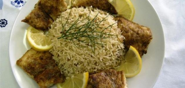 - نضع القليل من البصل المفروم والمشوّح بالزيت على سطح الأرز بعد نضجه، ونتركه على النار لمدّة خمس دقائق، ثمّ نسكبه في طبق التقديم، ونضع فوقه السمك المقلي، ونزيّنه بالبقدونس المفروم، والصنوبر المقلي، واللوز المقشّر والمقلي.