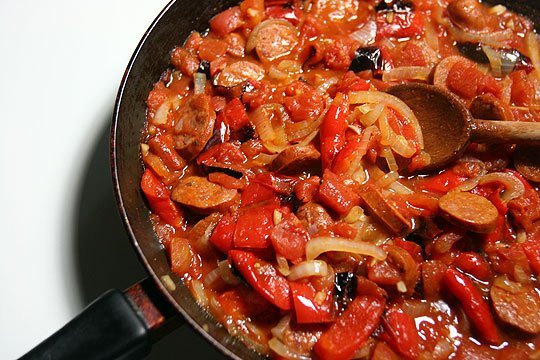 طريقة سجق بالفلفل والطماطم