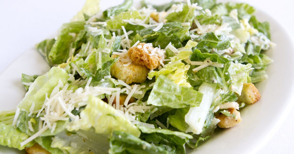 1- في وعاء، ضعي الخسّ، الخيار، جبن البارميزان والكروتون.