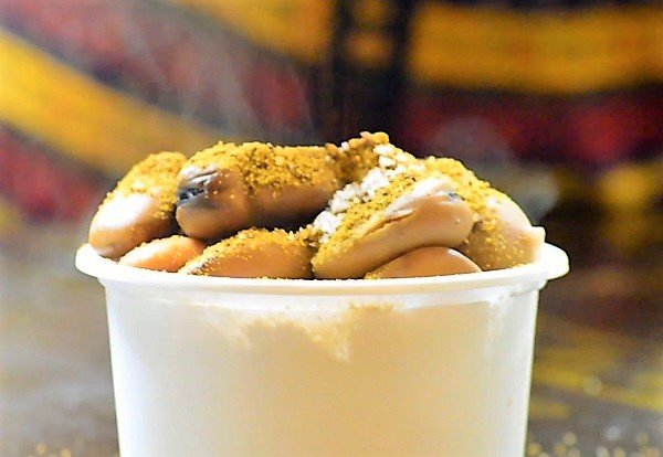6. نسكب الفول في الطبق و نضيف الكمون و الملح و قطع من الليمون .